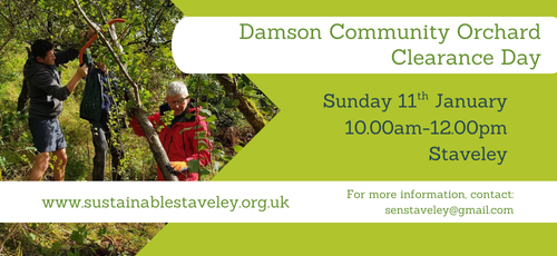 The next Clearance day at the Community Orchard is Sat 11th January, 10.00am – 12.00pm. If you would like to come along email: senstaveley@gmail.com.